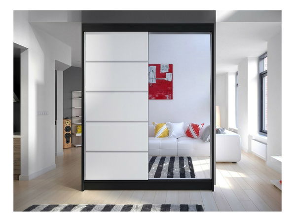 Ruhásszekrény Bianca III (fekete + fehér + tükör) (RGB LED világítás színes)