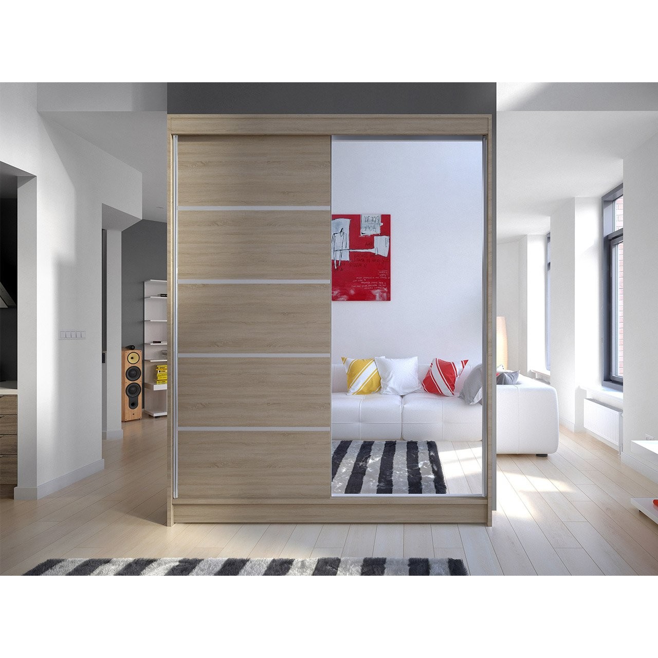 Ruhásszekrény Bianca III (szonoma tölgy + tükör) (világítás nélkül)