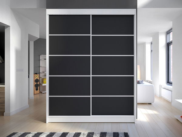A laminált tábla 16 mm vastag Tolóajtó rendszer Alumínium vezetők a Sevrolltól Fogantyú alumínium rúd formájában az ajtó mentén Az alumínium fogantyúk megakadályozzák az ajtó meghajlását > A csomagokban mindent megtalál az önálló összeszereléshez, beleértve az összes elemet és az összeszerelési útmutatót.