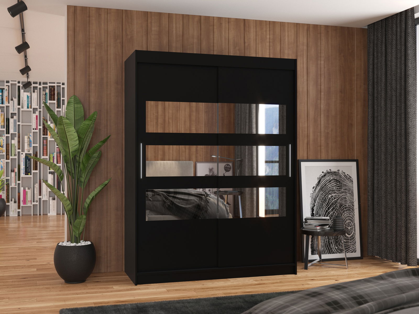 Ruhásszekrény Fioren (fekete) (tükörrel)