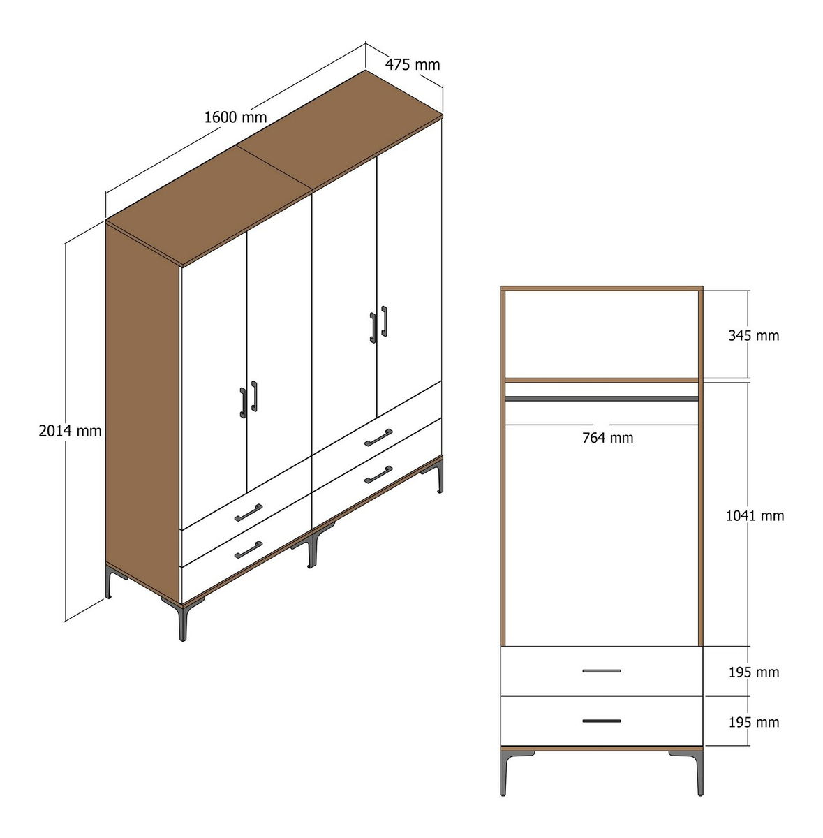 vastagság: 18 mm, szélesség: 160 cm, magasság: 47,5 cm, mélység: 201,4 cm