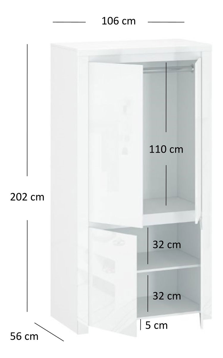 Ruhásszekrény Leona 4D (fényes fehér)