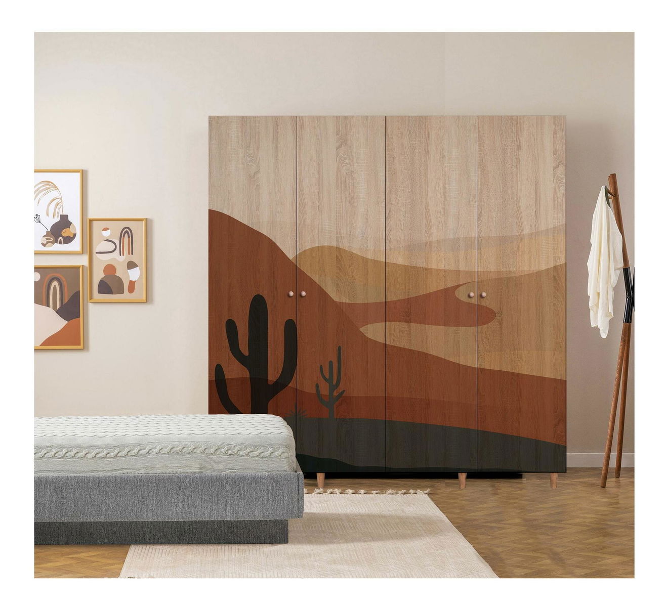 Vastagság: 18 mm. Gyertyán lábak,tömör fa fogantyúk, UV bevonat. Méretei: Szélesség: 180 cm. Magasság: 192 cm. Mélység: 52 cm. Lábak magassága: 10 cm