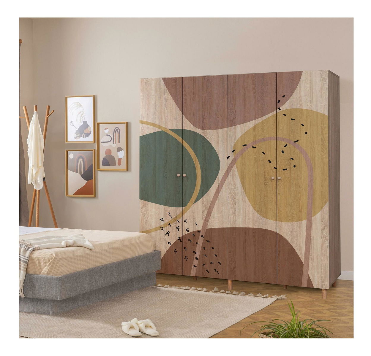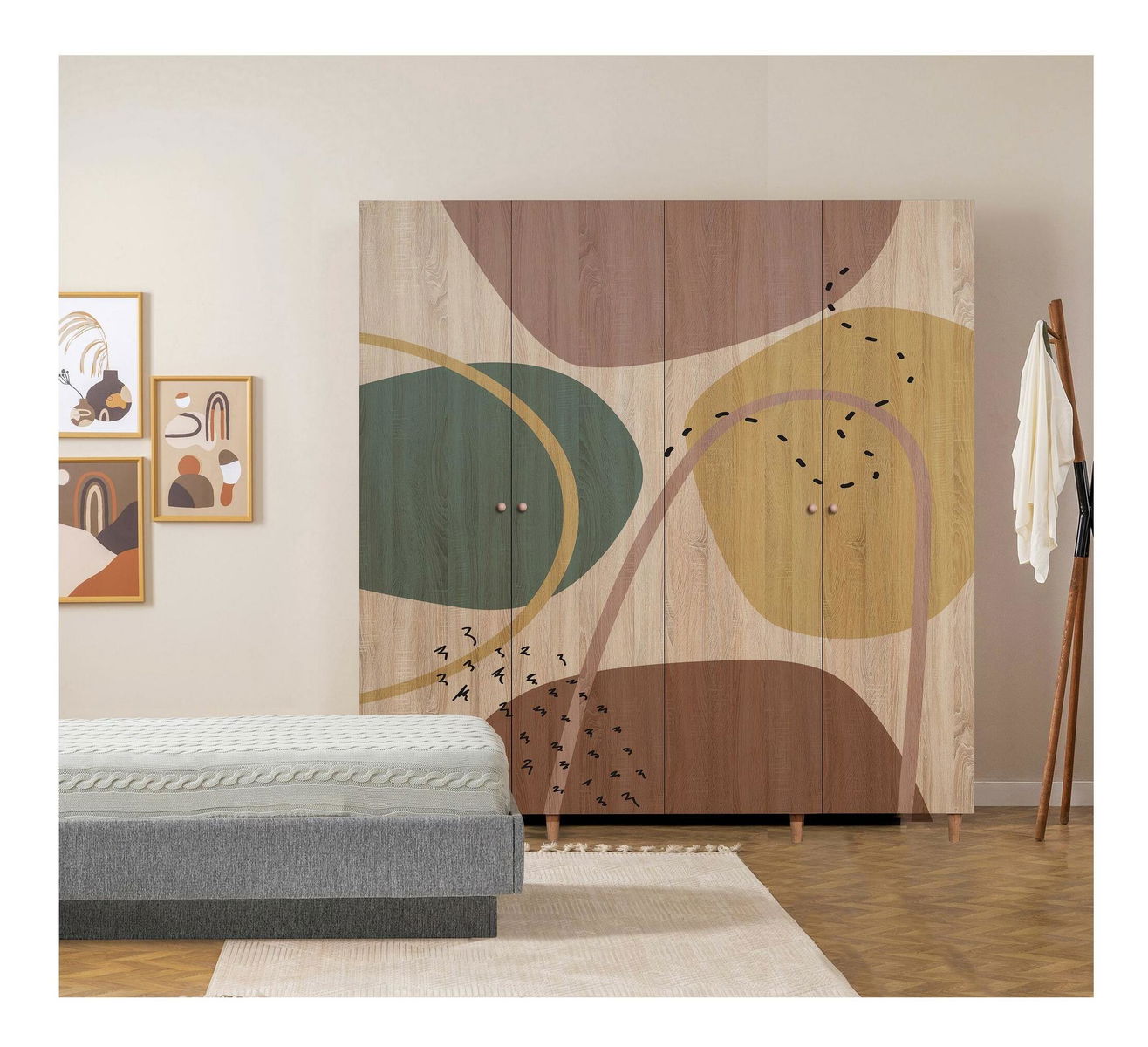 Vastagság: 18 mm. Gyertyán lábak,tömör fa fogantyúk, UV bevonat. Méretei: Szélesség: 180 cm. Magasság: 192 cm. Mélység: 52 cm. Lábak magassága: 10 cm