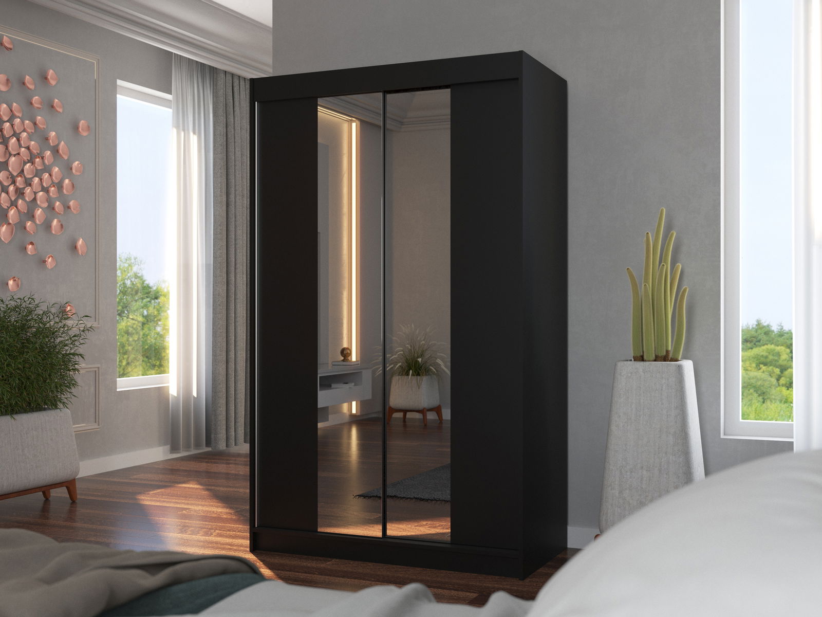 Ruhásszekrény Madio (fekete) (tükörrel)