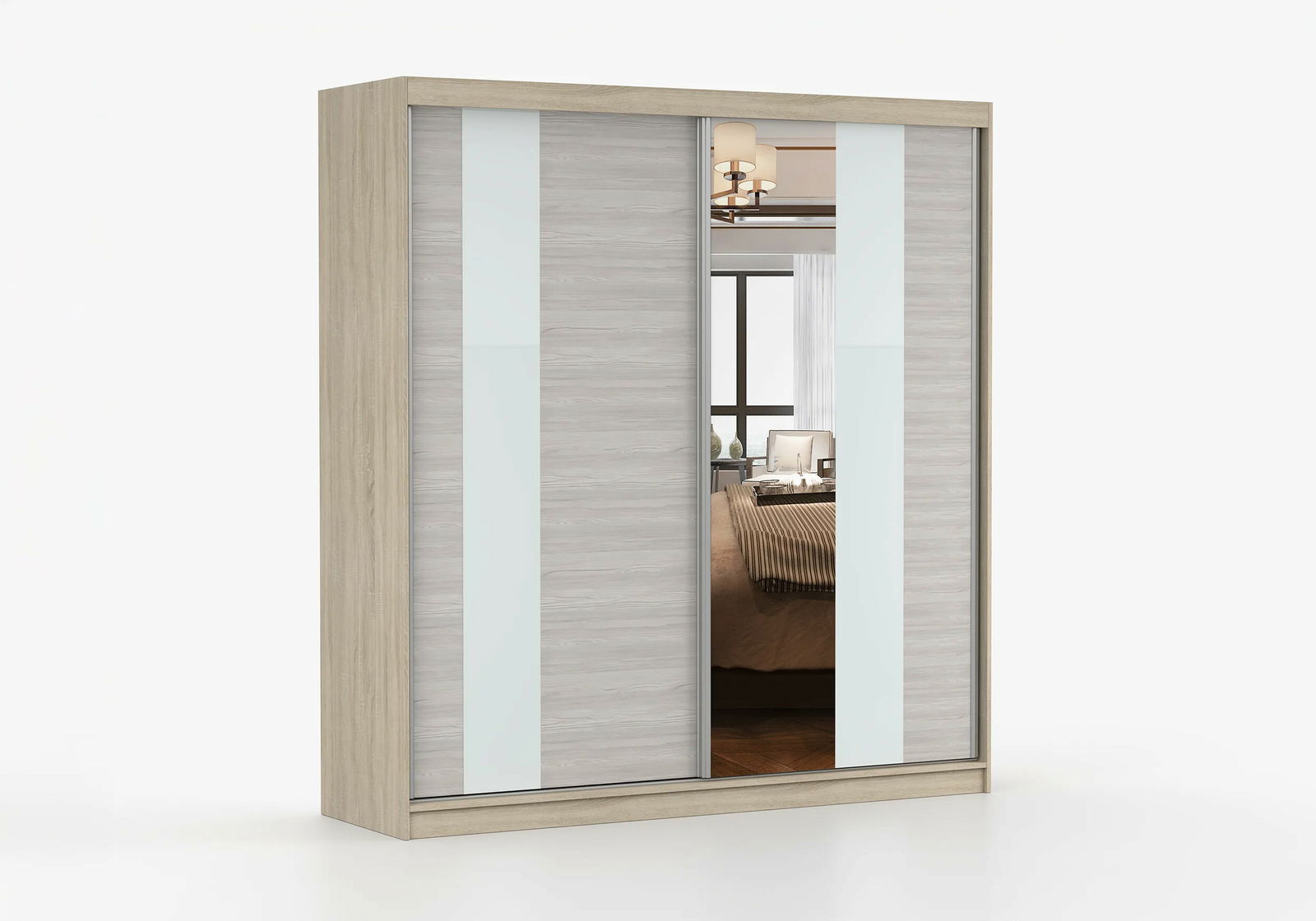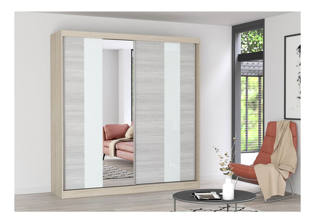 Ruhásszekrény Mebur 32 200 (Sonoma tölgy + Katthult + Fehér üveg + Tükör)