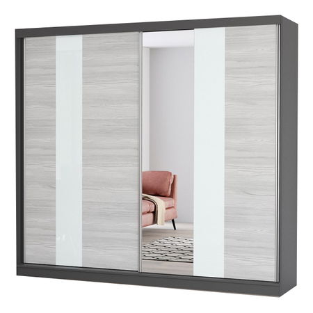 Ruhásszekrény Mebur 32 230 (grafit + Katthult + Fehér üveg + Tükör)