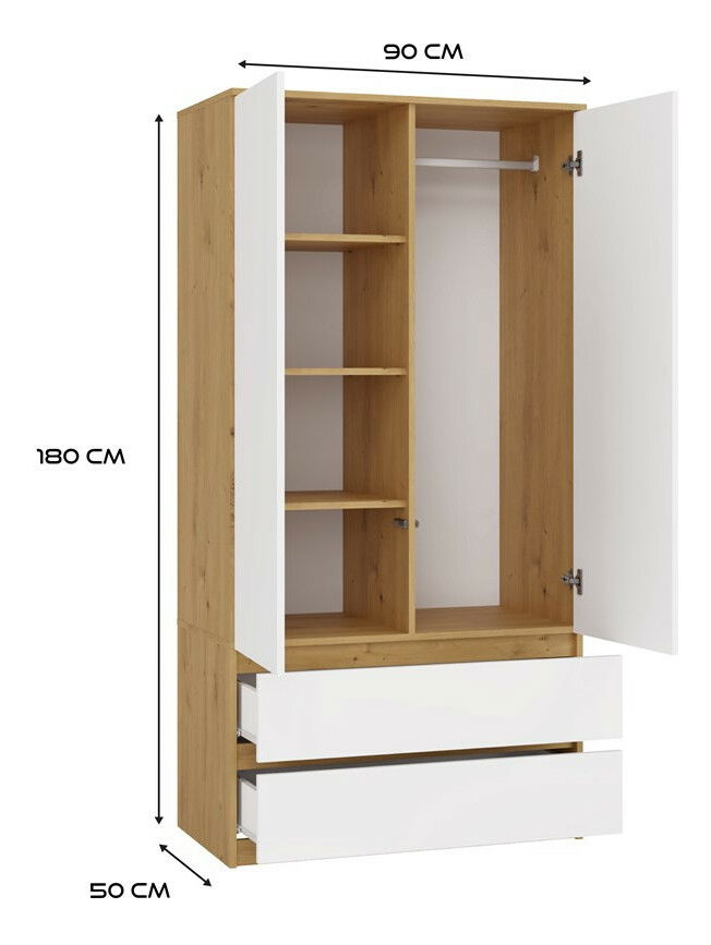 Ruhásszekrény Musecalo 1 (artisan tölgy + fehér)