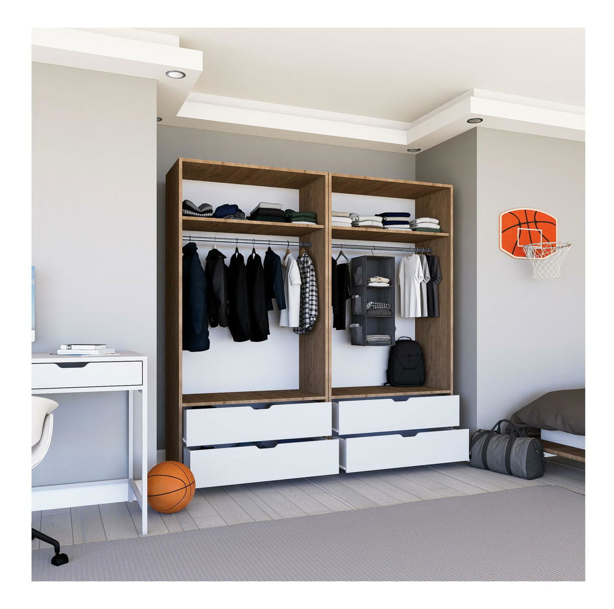 Ruhásszekrény Nisae 21 (világos dió + fehér)