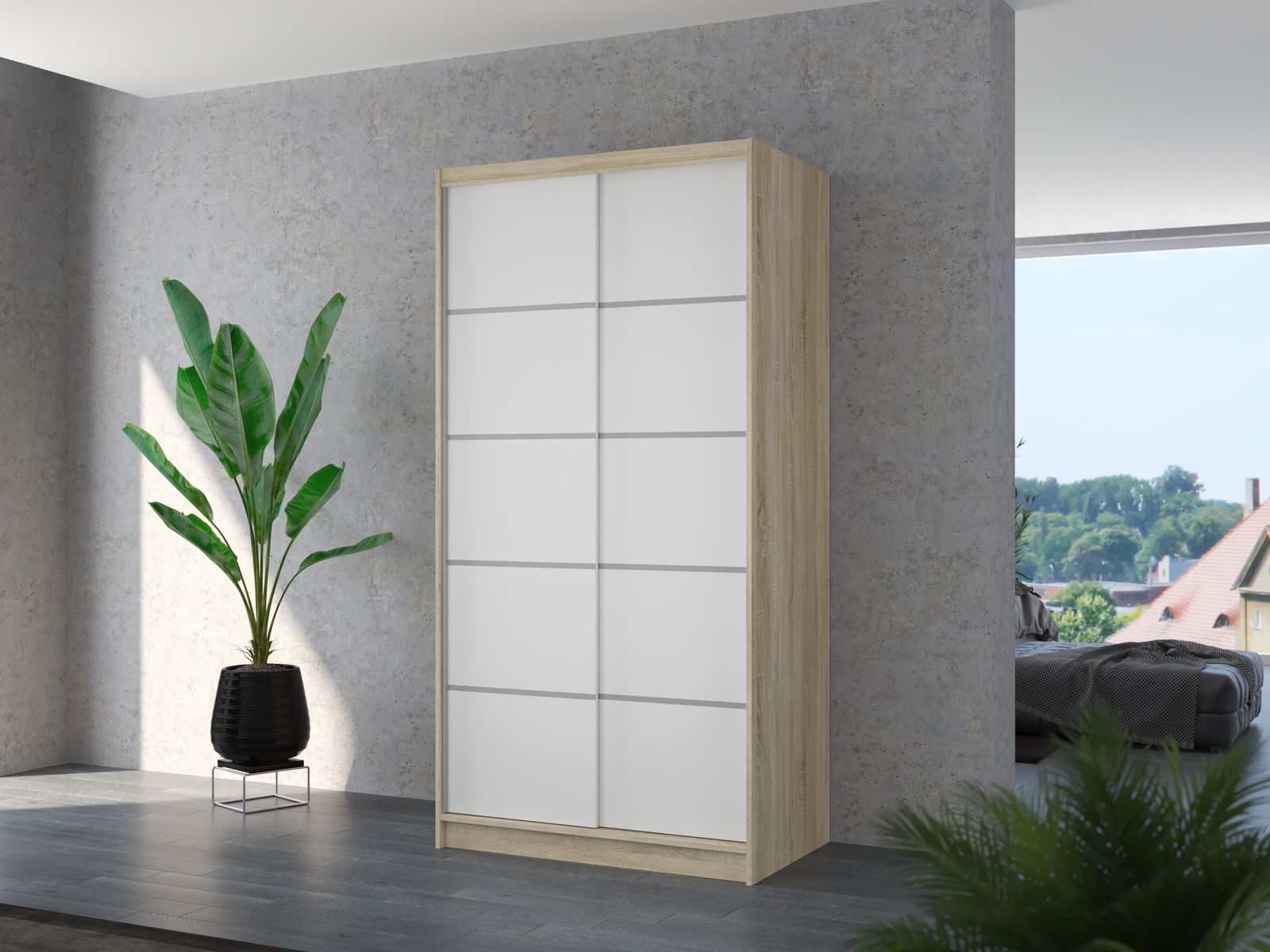 Ruhásszekrény Remea (szonoma tölgy + fehér)