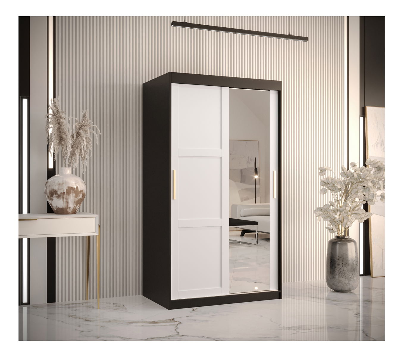 Ruhásszekrény Riven 2 100 (matt fekete + matt fehér) (tükörrel)