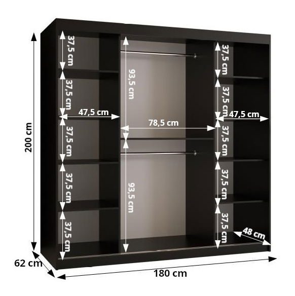 Ruhásszekrény Riven 2 180 (matt fekete) (tükörrel)