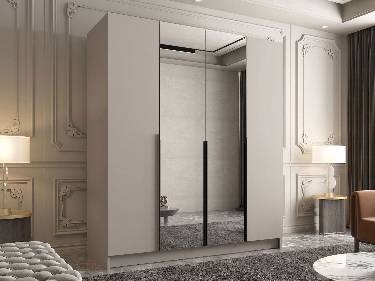 Ruhásszekrény Sezalos II (kasmír + fekete) (tükörrel)