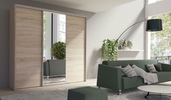 Ruhásszekrény tolóajtókkal Gantera 2 B (szonoma tölgy) (tükörrel)