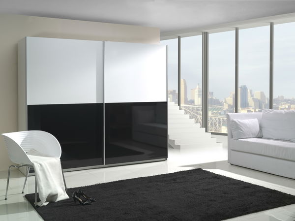Ruhásszekrény tolóajtókkal Liff 05 (fehér + fényes fekete)