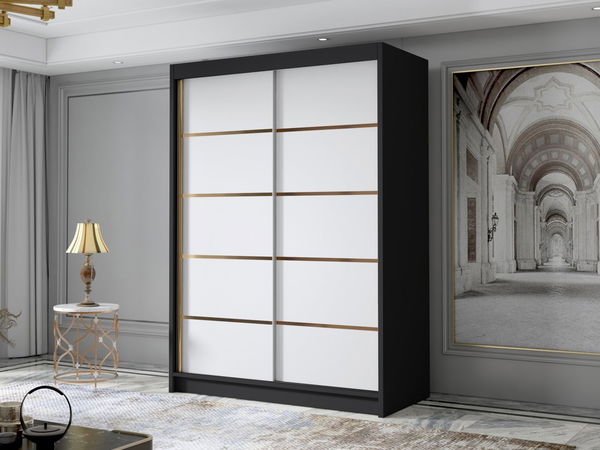 Ruhásszekrény tolóajtókkal Varentona IV 120 (fekete + fehér + arany)