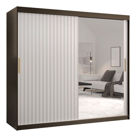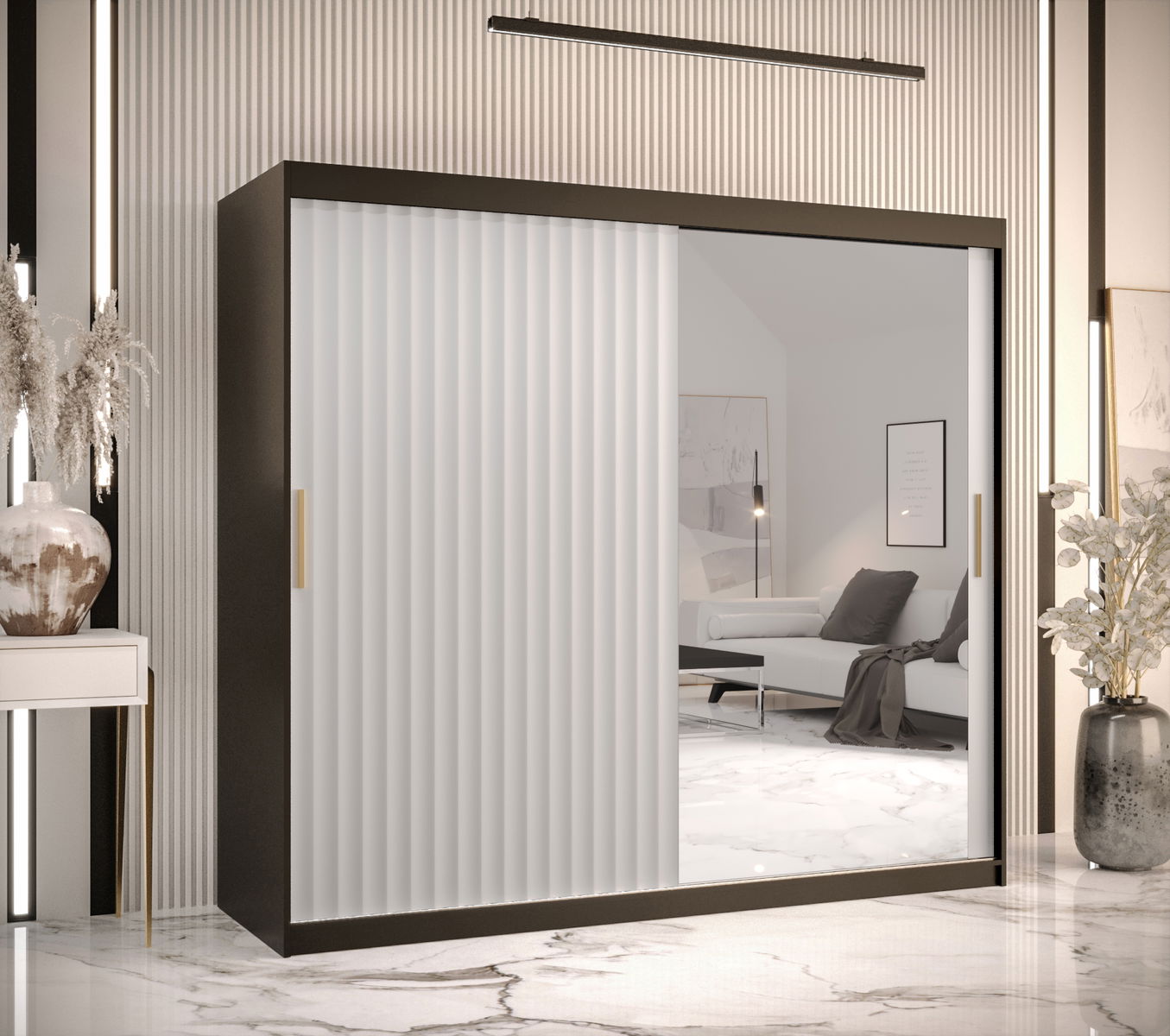 Ruhásszekrény tükörrel 200 cm Riana Wa 2 200 (fekete + matt fehér)