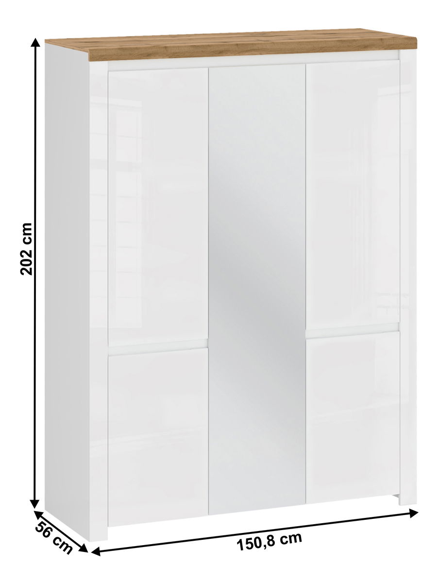 Ruhásszekrény Vilgi 5D (tükörrel) (fényes fehér + wotan tölgy)