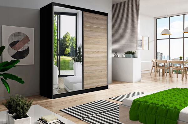 Ruhásszekrény Viola 05 (Fekete + Sonoma tölgy) *kiárusítás