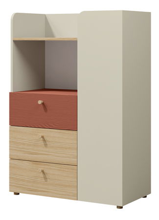Ruhásszekrény Yoda 7 (világos bézs + olajozott tölgy + korall)