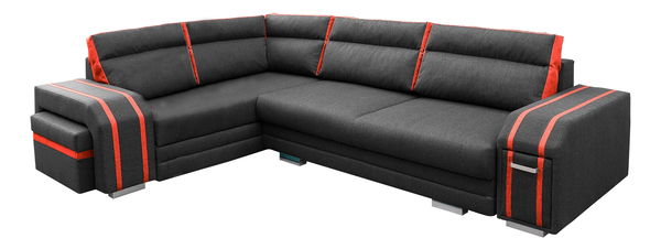 Luxus kanapé praktikus eszközökkel. Nincs szükség külön zsámolyra, amely használaton kívül helyet foglal. Ez a sarokkanapé az egyik kartámaszban egy zsámolyt rejt. Egyszerűen ki kell húzni, és pihentetheti fáradt lábát, vagy leültetheti a látogatót. Ezen kívül praktikus tárolóhelyet is tartalmaz. A második kartámaszban található egy fiók, amely bárként használható. Abban az esetben, ha a látogatónak váratlanul aludnia kell, kihajthatja a kanapét, és alvóhelyet kap. A kanapé mindkét részében található egy tárolóhely, amelyben ágyneműt, párnát vagy takarót helyezhet el. Ahogy mondani szokás, sok zenét kap kis pénzért, ha megveszi ezt a ülőgarnitúrát.