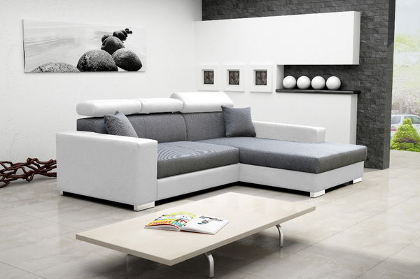 - Sarok kanapé Mahonia (világos szürke + fehér) (J)