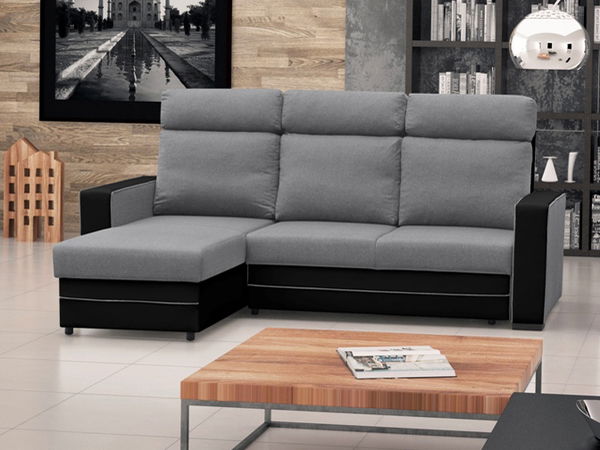 - Sarok kanapé Malva (világos szürke + fekete) (B)