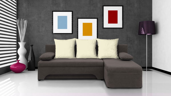 Sarok kanapé Sally Szürkés-barna + krém párnák (1 tárhely, bonell)