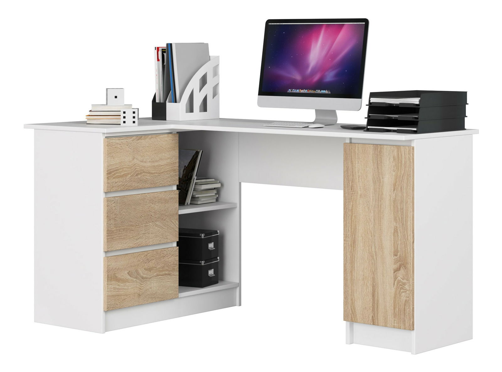 Sarok PC asztal Bienvenida (fehér + sonoma tölgy) (B)