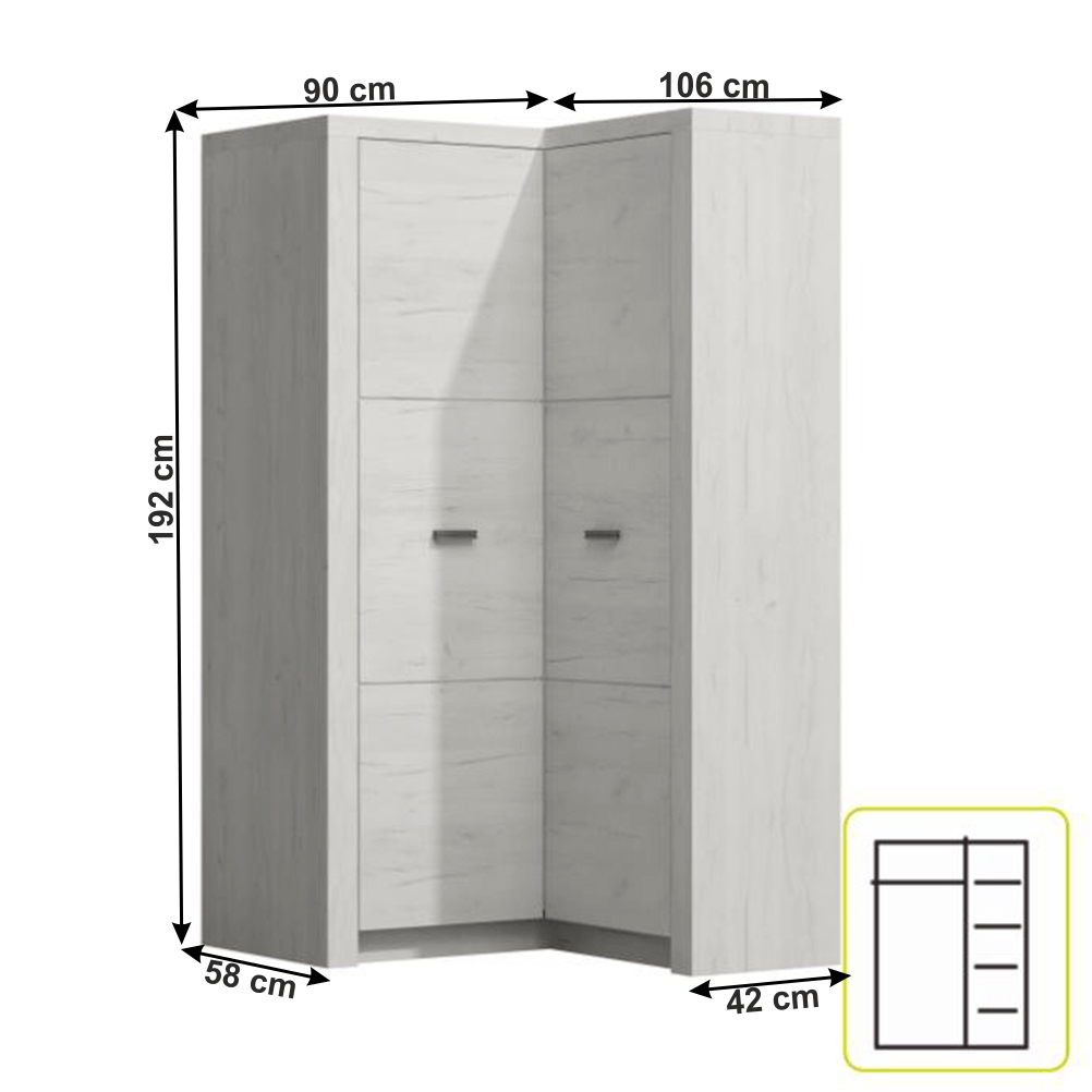 Sarok ruhásszekrény Infinity 14L (Fehér kőris)