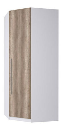Sarokszekrény, amit főleg az előszobába vagy a hálószobába fog értékelni. A nem elegendő tárhely problémáját azonnal megoldja. Ruhaakasztó rudat és polcokat találunk benne a ruhák és kiegészítők tárolásához. Vékony, fém fogantyúkat találunk rajta.