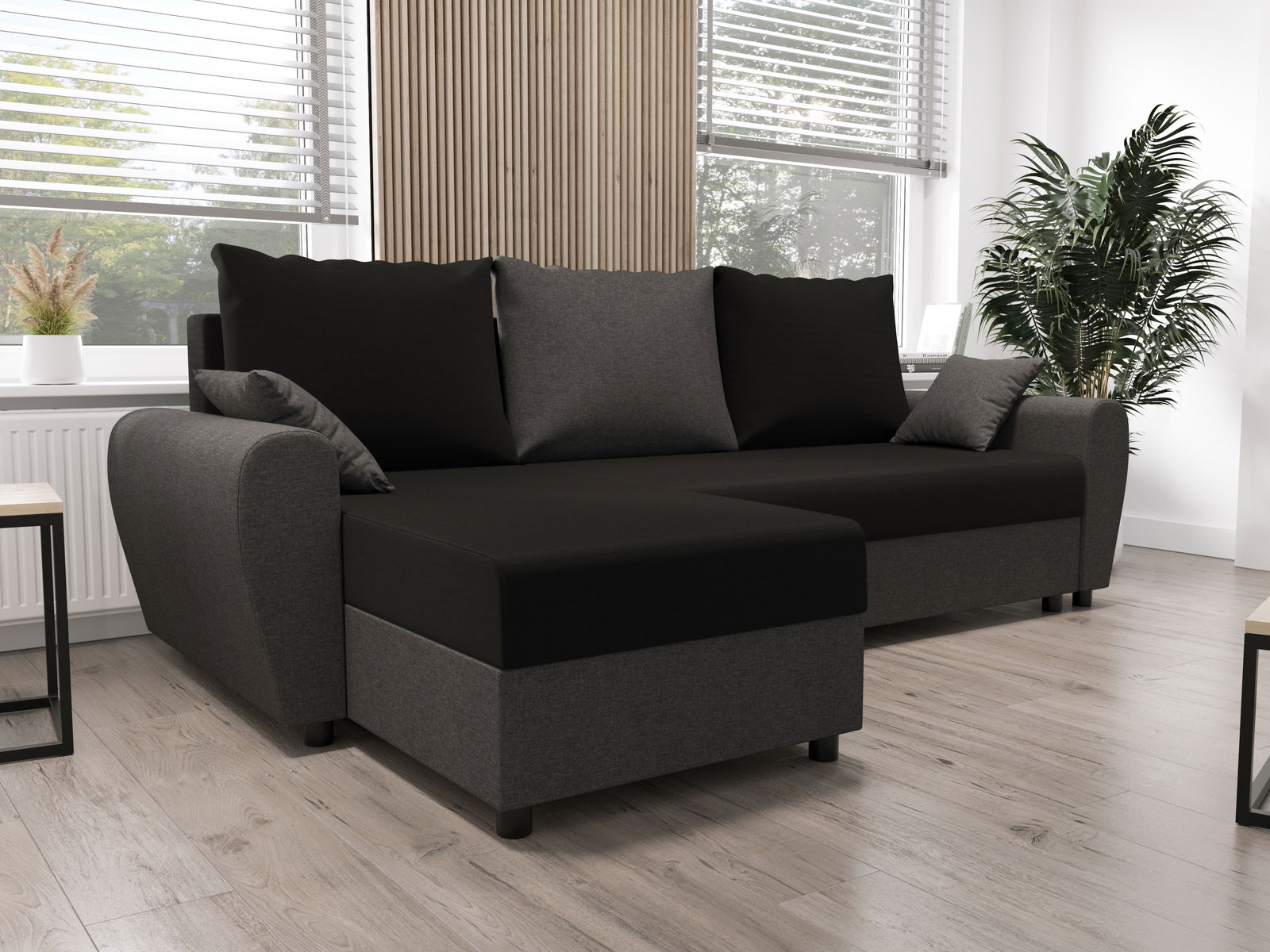 Sarok ülőgarnitúra Fleur L (fekete + szürke) (B)