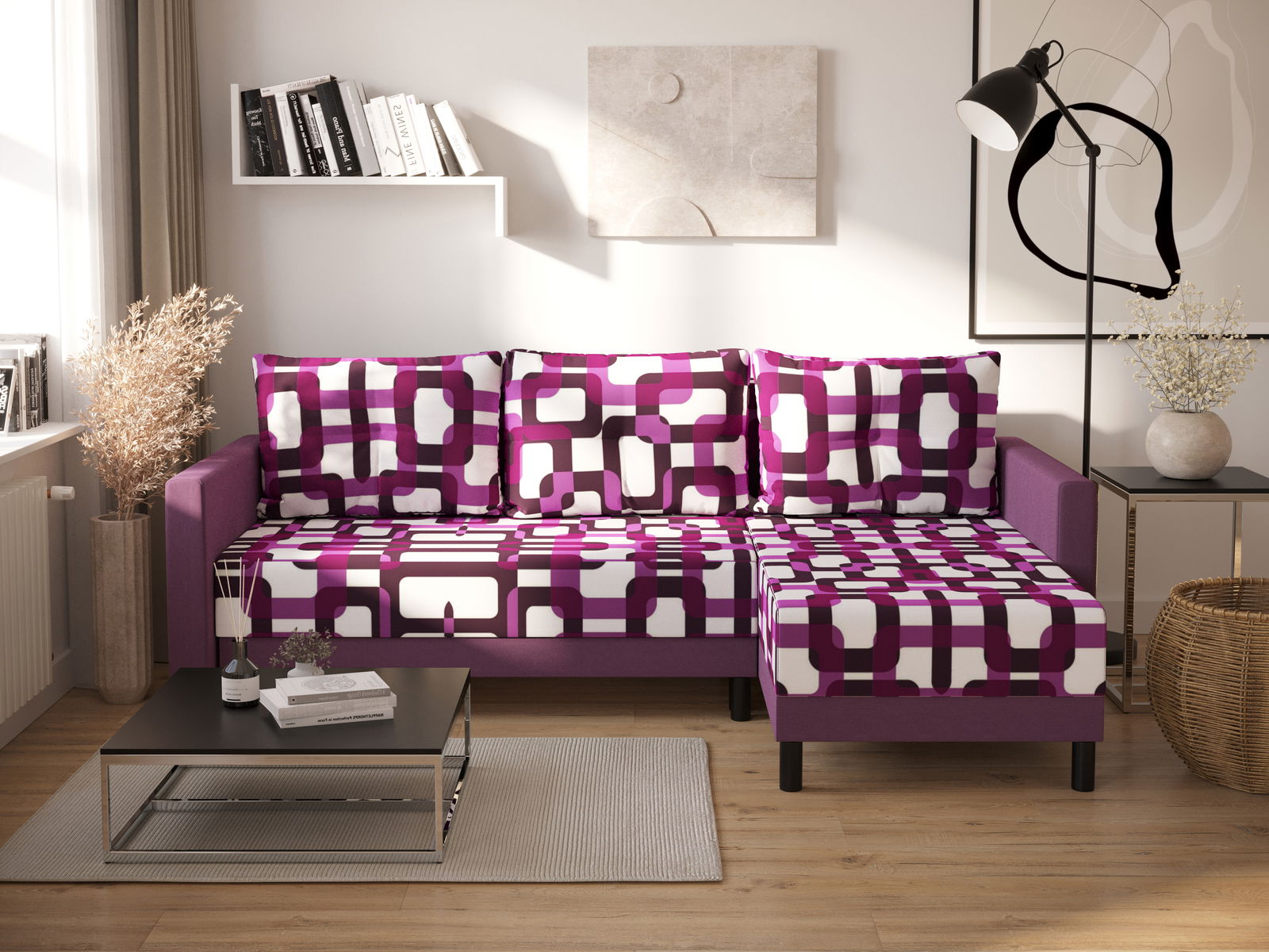 Sarok ülőgarnitúra Glimmer L (lila + fehér) (J)