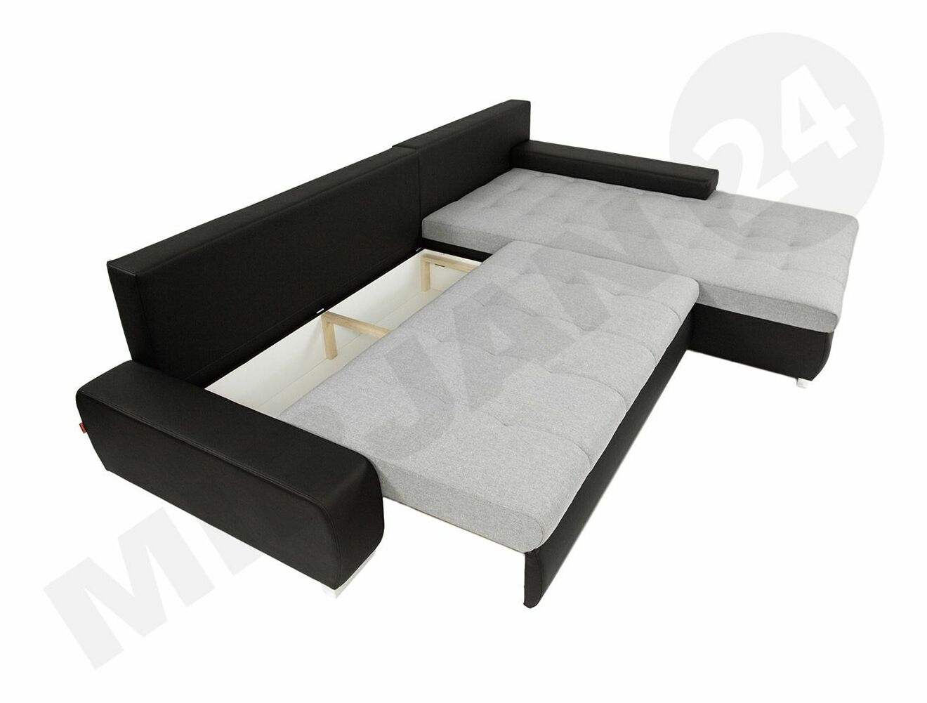 MutasdA kanapé L alakú, külső méretei 302 cm x 213 cm, az összecsukható rendszernek köszönhetően pedig az ülőrész alvásra is használható, szétnyitva 252 cm x 140 cm a méretei.
