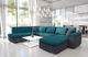 szabadon álló sarokkanapé (háttámla szövetborítással)