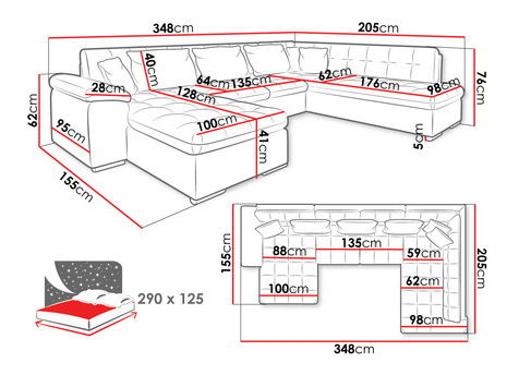 Szélesség: 348 cm