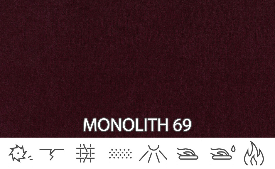 A Monolith egy strapabíró plüss anyag, amely kellemes tapintású. Egy speciális védőréteg borítja, amely hidrofób réteget hoz létre, amely megvédi a kiömlött folyadékok gyors felszívódását. Nagyon ellenáll a kifakulásnak és a foltosodásnak. A szövetet árnyékoló anyag jellemzi. Kárpitápoló szerekkel tisztítható. Nem szabad fehéríteni vagy túl magas hőmérsékletnek kitenni – ne szárítsa a szárítóban.