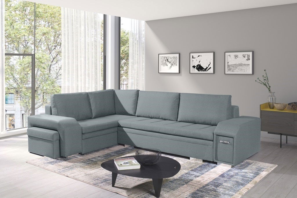 MutasdAz Aja sarokkanapé egyik karfájában rejtett minibár, a másikban pedig egy zsámoly található. Az kanapé összecsukható, tárolóhellyel rendelkezik,