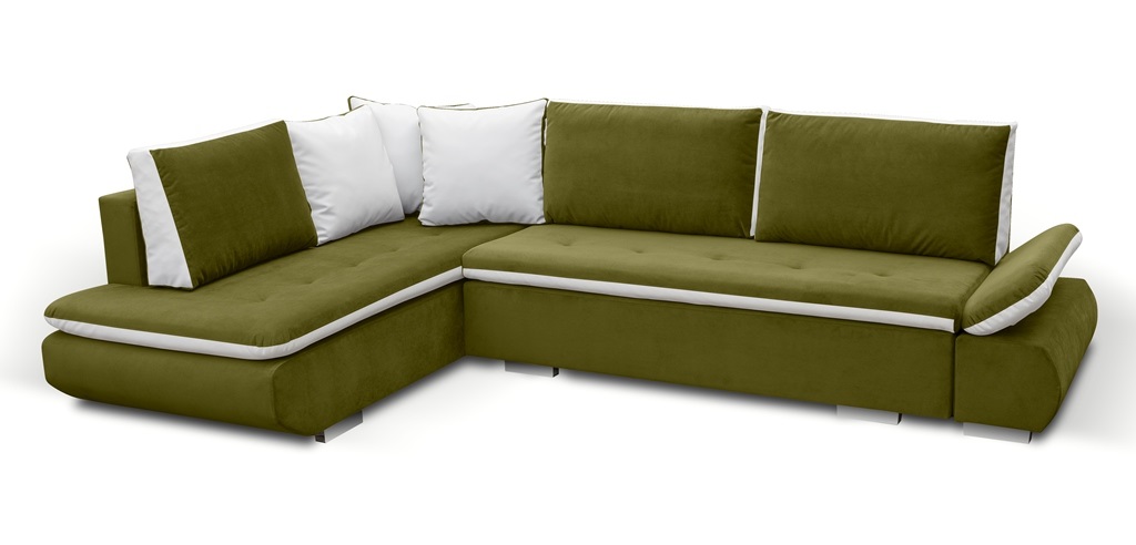 Sarokkanapé Arleen (sötét oliva + fehér) (B)