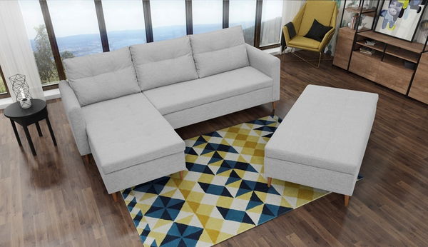 A kivételes Aurelio sarokkanapé kis helyekre is alkalmas. Abban a pillanatban, amikor a zsámolyt a kanapé mellé helyezi, alvóhelyet alakít ki az alkalmi látogatók számára. Balos és jobbos változatban kapható. A zsámoly belső részében nagy tárolóhely található. Az ár tartalmazza a zsámolyt.