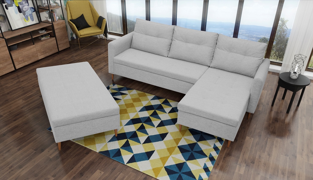 A kivételes Aurelio sarokkanapé kis helyekre is alkalmas. Abban a pillanatban, amikor a zsámolyt a kanapé mellé helyezi, alvóhelyet alakít ki az alkalmi látogatók számára. Balos és jobbos változatban kapható. A zsámoly belső részében nagy tárolóhely található. Az ár tartalmazza a zsámolyt.