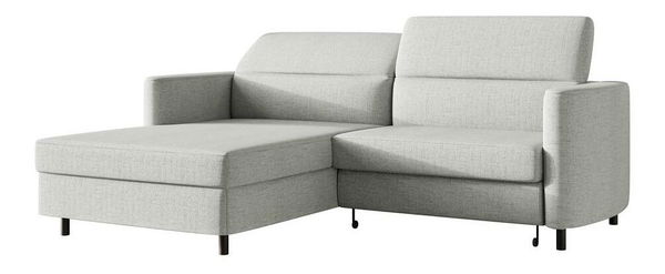 Divatos és funkcionális nappali bútorokat keres? Az összecsukható sarokkanapé remek választás lesz. A karosszéria karcsú fém lábakra van felszerelve, amelyek stabil tartást biztosítanak a szerkezetnek. Az ülés poliuretán habbal és B típusú hullámrugóval van kitöltve - ennek köszönhetően a bútor rugalmas és gyorsan visszanyeri eredeti formáját anélkül, hogy tele lenne csúnya horpadásokkal. alvó funkcióval és DL összecsukható mechanizmussal rendelkezik, amely lehetővé teszi, hogy egy sarokkanapét gyorsan kényelmes ággyá alakítsa nagy felülettel. Az ülés alatt egy tágas tárolórekesz található az ágyneműk számára, ahol kényelmesen tárolhatja az összes szükséges textíliát. Termék részletek: a kanapé balos, a kartámasz mélysége: 85 cm, a fejtámla állítása lehetővé teszi a dőlésszög beállítását. igények, habsűrűség az ülésben: 30/25, habsűrűség az alapban: 30/25, a bútor kárpitozott hátsó része lehetővé teszi, hogy bárhol elhelyezhető a nappaliban, nem feltétlenül a falhoz. Összeszerelés. Szürke-bézs Moly 04 szövettel kárpitozva. A Moly tartós, strapabíró szövet, mely rendkívül puha tapintású. Zsenília szövetből készült, puha és finom mintájú, elegáns szövésű, ujjakkal tapintható. Ez az anyag ötvözi az eredeti dizájnt a praktikus használattal. Speciális hidrofób víztaszító réteggel borított, véd a folyadékok gyors felszívódása ellen. Ez azt jelenti, hogy a folyadékok nem hatolnak be azonnal a szövet szerkezetébe, hanem a felületén maradnak.