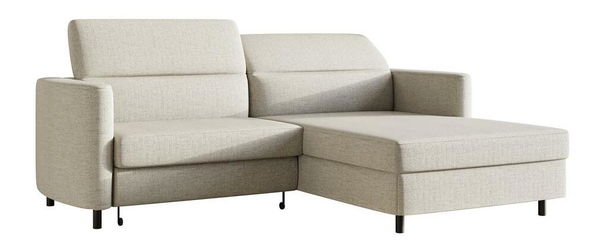Divatos és funkcionális nappali bútorokat keres? Az összecsukható sarokkanapé remek választás lesz. A karosszéria karcsú fém lábakra van felszerelve, amelyek stabil tartást biztosítanak a szerkezetnek. Az ülés poliuretán habbal és B típusú hullámrugóval van kitöltve - ennek köszönhetően a bútor rugalmas és gyorsan visszanyeri eredeti formáját anélkül, hogy tele lenne csúnya horpadásokkal. alvó funkcióval és DL összecsukható mechanizmussal rendelkezik, amely lehetővé teszi, hogy egy sarokkanapét gyorsan kényelmes ággyá alakítsa nagy felülettel. Az ülés alatt egy tágas tárolórekesz található az ágyneműk számára, ahol kényelmesen tárolhatja az összes szükséges textíliát. Termék részletek: a kanapé jobbos, a kartámasz mélysége: 85 cm, a fejtámla állítása lehetővé teszi a dőlésszög beállítását. igények, habsűrűség az ülésben: 30/25, habsűrűség az alapban: 30/25, a bútor kárpitozott hátsó része lehetővé teszi, hogy bárhol elhelyezhető a nappaliban, nem feltétlenül a falhoz. Összeszerelést igényel. Világosbézs színű Moly 03 szövettel kárpitozva. A Moly tartós, strapabíró szövet, mely rendkívül puha tapintású. Zsenília szövetből készült, puha és finom mintájú, elegáns szövésű, ujjakkal tapintható. Ez az anyag ötvözi az eredeti dizájnt a praktikus használattal. Speciális hidrofób víztaszító réteggel borított, véd a folyadékok gyors felszívódása ellen. Ez azt jelenti, hogy a folyadékok nem hatolnak be azonnal a szövet szerkezetébe, hanem a felületén maradnak.
