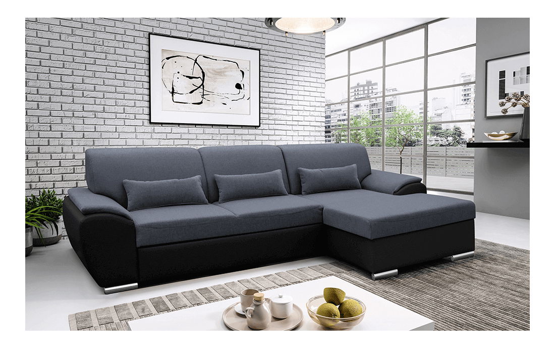 Sarokkanapé Excelsa 2 (J) (fekete öko-bőr + sötétszürke szövet)