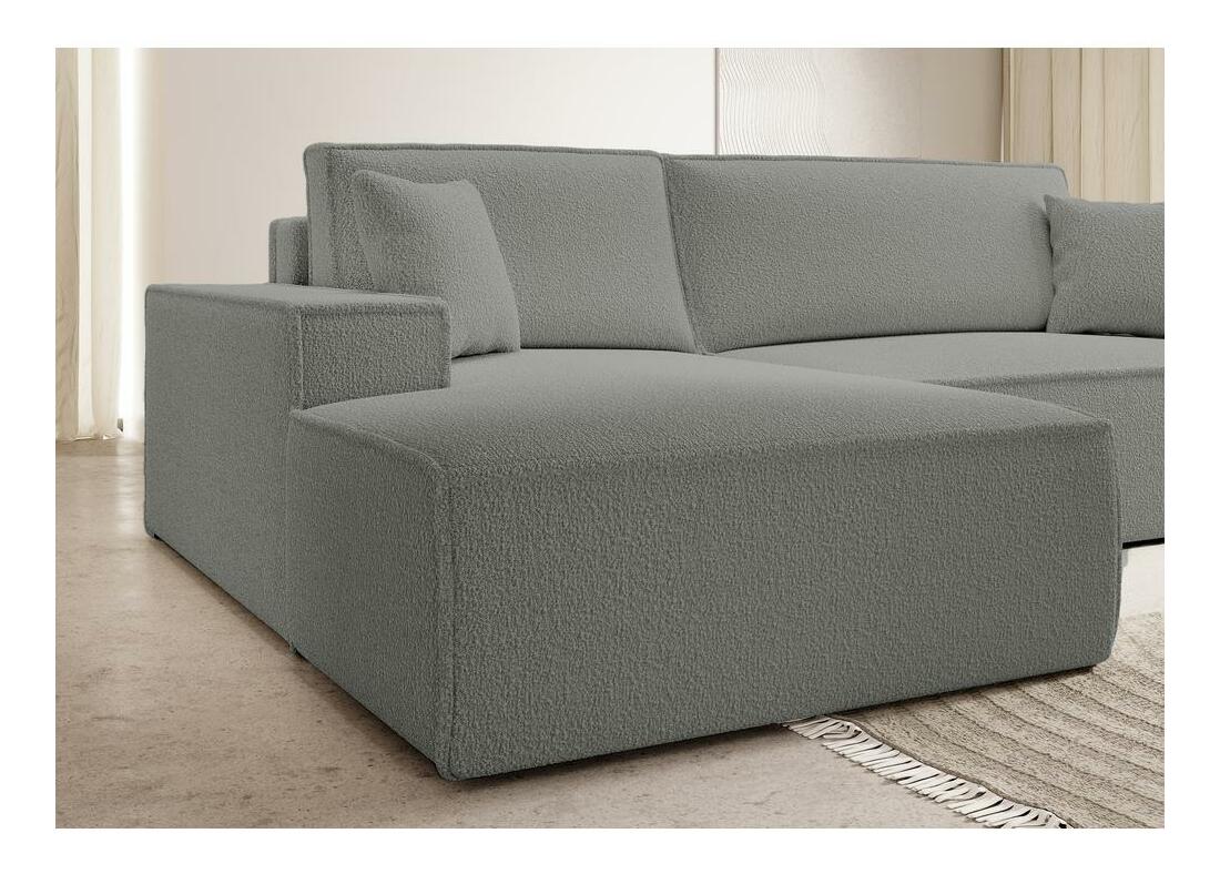 MutasdStílusos nappali bútort keres? Válasszon egy sarokkanapé-ágyat . A New minimalista forma sokféle elrendezésbe tökéletesen illeszkedik. Az ülés puha poliuretán habbal és B típusú hullámrugóval van feltöltve, amelyek kivételes használati kényelmet biztosítanak. A bútor intelligens kihajtható mechanizmussal rendelkezik, amely megkönnyíti a sarokkanapé alakítását nagy felületű ággyá. Az új praktikus tárolórekesszel is rendelkezik, amelyben további ágyneműt vagy egyéb textíliákat tárolhat. Termékleírás: L alakú bútor, bal sarok, háttámla magassága: 46 cm, kartámasz magassága: 53 cm, otomán hossza: 123 cm, összeállítás: szabadon álló, stílus: modern, skandináv. A bútor szürke színű Abriamo 7 szövettel kárpitozott. Az Abriamo puha, kellemes tapintású boucle szövet. Ellenáll a súrlódásnak, kopásnak és hámlásnak.