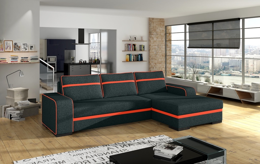 Sarokkanapé Fidelia (fekete + narancssárga) (J)