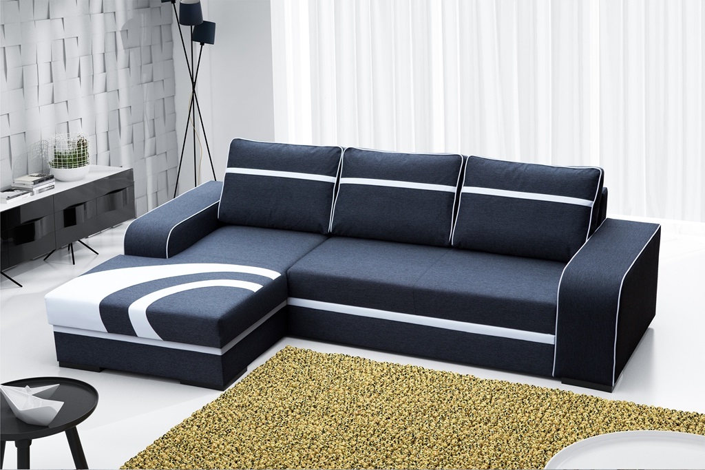 Modern sarokkanapé, amely uralni fogja a nappalit. Alkalmas nappaliba vagy nagyobb terekbe. Nagy tárolóhelyet tartalmaz, és kialakítása lehetővé teszi az alkalmi alvást. Balos és jobbos változatban kapható.