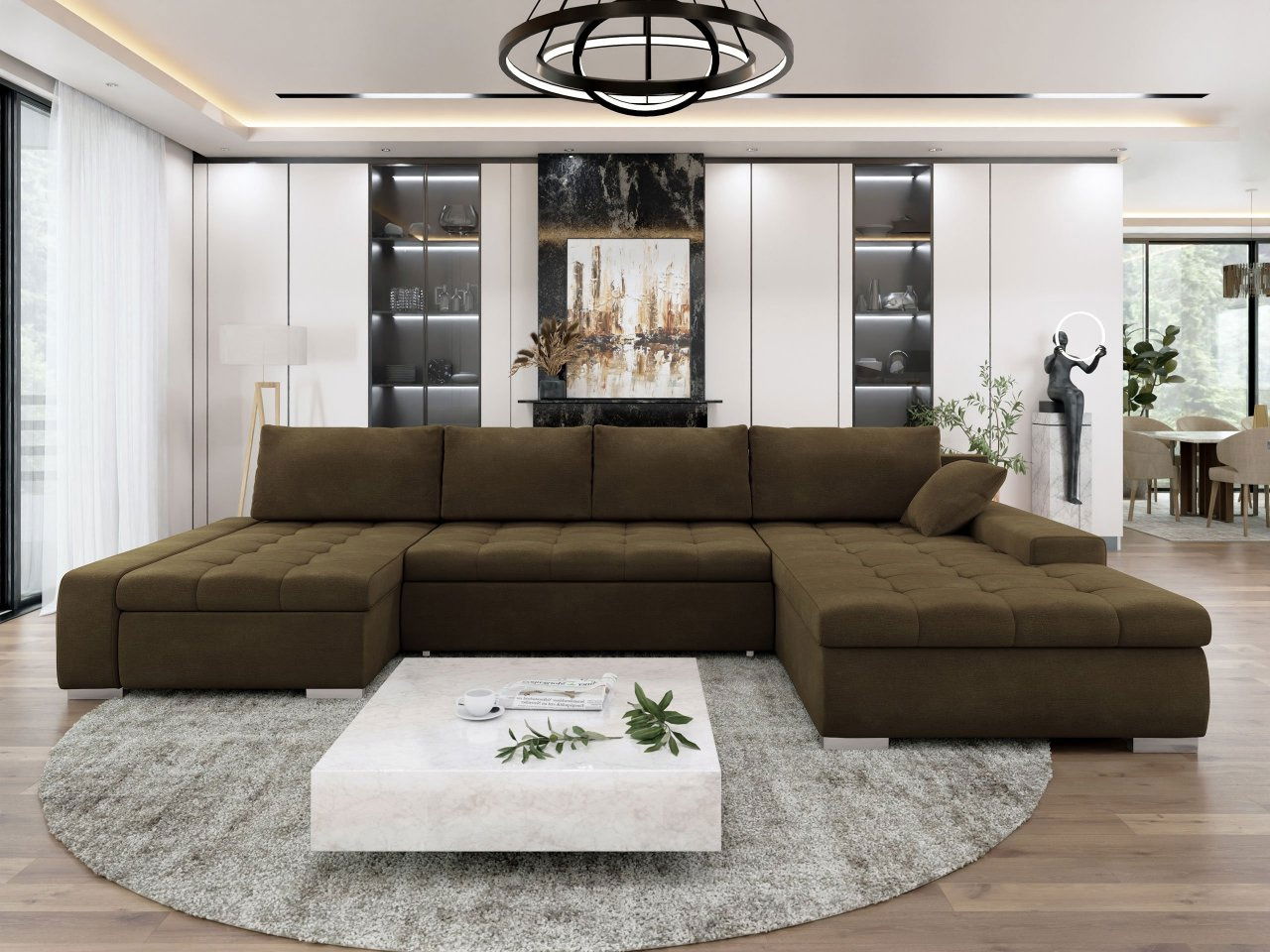 MutasdA kanapé ideális választás azok számára, akik kényelmet és stílust keresnek. Tegye kellemesebbé magának és szeretteinek a közös kávézás, süteményevés vagy esti filmnézés élményét. A Caro U kanapén minden családtag kényelmesen elfér, így még jobban élvezhetik a közös pillanatokat. A kanapé emellett kihúzható és tárolóhellyel is rendelkezik. Méretek: hosszúság: 394 cm szélesség: 213 cm magasság: 80 cm fekvőfelület: 140x340 cm Szín: a színt itt választhatja ki Kivitel: univerzális (oldalválasztás az összeszereléskor) Kiegészítő információk: fa keret + forgácslap, nagy rugalmasságú hab, hullámrugó, kihúzható funkció, alvási funkció, tárolóhely, párnák az árban benne vannak, párnák cipzárral, a kanapé alkalmas a helyiségbe. Garanciális idő: 24 hónap