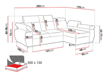 önálló sarokkanapé (szövet párnázott háttámla)