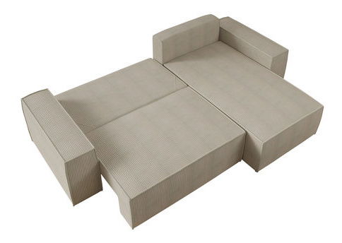 A sarokkanapé szabadon álló (hátsó része szövetborítású).